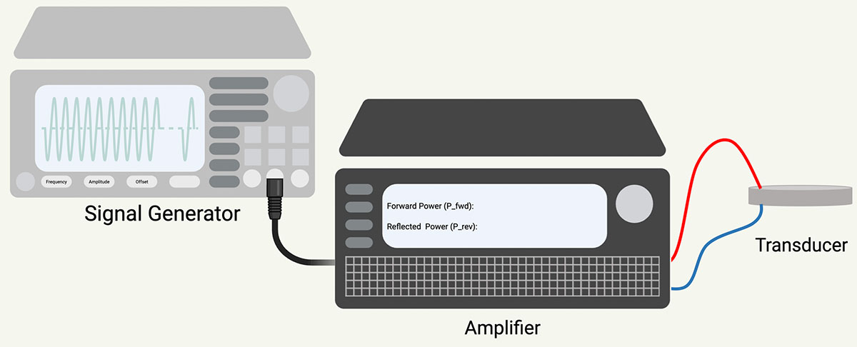 | RF Power Amplifier | Electronics & Innovation 2100L Amplifier | Boosts low-voltage signal from the generator to the levels required to drive the piezo element |